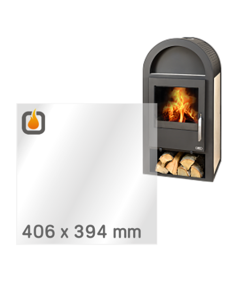 Das Glas hat die Maße 406 x 394 mm und eine Dicke von 4 mm. Es ist klar, beidseitig identisch und ideal als Ersatz für das originale Sichtglas Ihres Kaminofens.