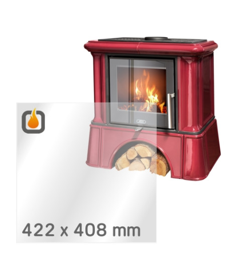 Das Glas hat die Maße 422 x 408 mm und eine Dicke von 4 mm. Es ist klar, beidseitig identisch und ideal als Ersatz für das originale Sichtglas Ihres Kaminofens.