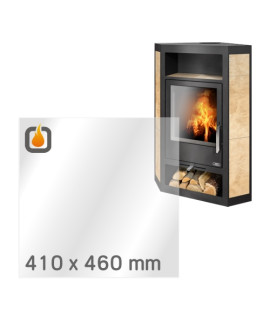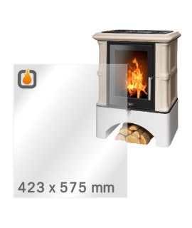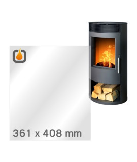 Das Glas hat die Maße 361 x 408 mm und eine Dicke von 4 mm. Es ist klar, beidseitig identisch und ideal als Ersatz für das originale Sichtglas Ihres Kaminofens.