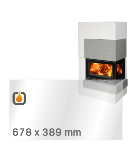 Das Glas hat die Maße 678 x 389 mm und eine Dicke von 4 mm. Es ist klar, beidseitig identisch und ideal als Ersatz für das originale Sichtglas Ihres Kaminofens.