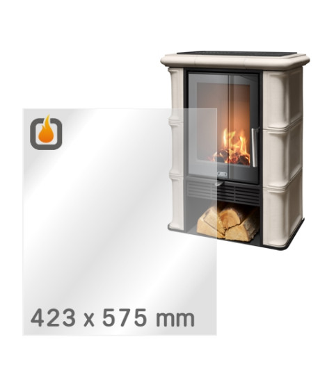 Das Glas hat die Maße 423 x 575 mm und eine Dicke von 4 mm. Es ist klar, beidseitig identisch und ideal als Ersatz für das originale Sichtglas Ihres Kaminofens.