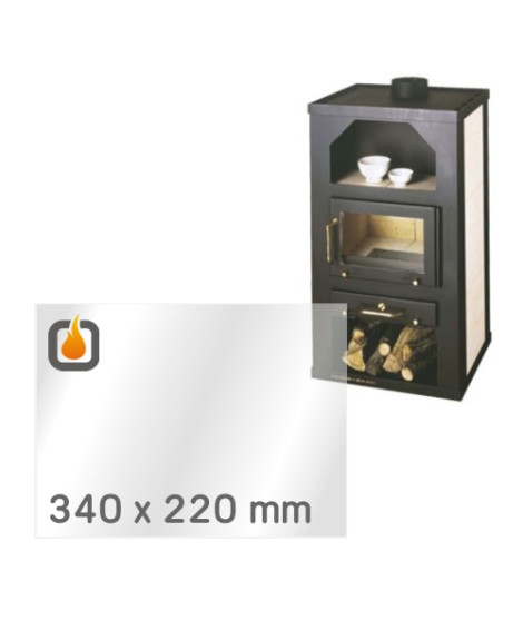 Das Glas hat die Maße 340 x 220 mm und eine Dicke von 4 mm. Es ist klar, beidseitig identisch und ideal als Ersatz für das originale Sichtglas Ihres Kaminofens.