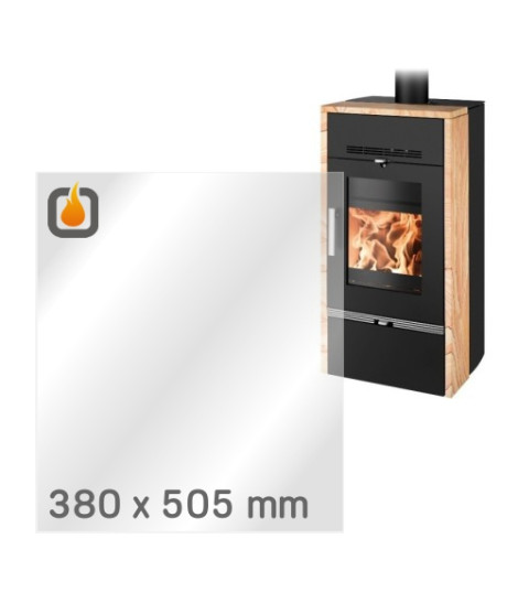 Das Glas hat die Maße 380 x 505 mm und eine Dicke von 4 mm. Es ist klar, beidseitig identisch und ideal als Ersatz für das originale Sichtglas Ihres Kaminofens.
