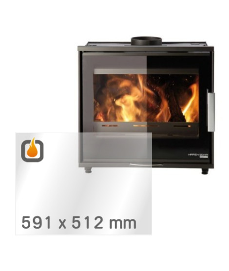 Das Glas hat die Maße 591 x 512 mm und eine Dicke von 4 mm. Es ist klar, beidseitig identisch und ideal als Ersatz für das originale Sichtglas Ihres Kaminofens.