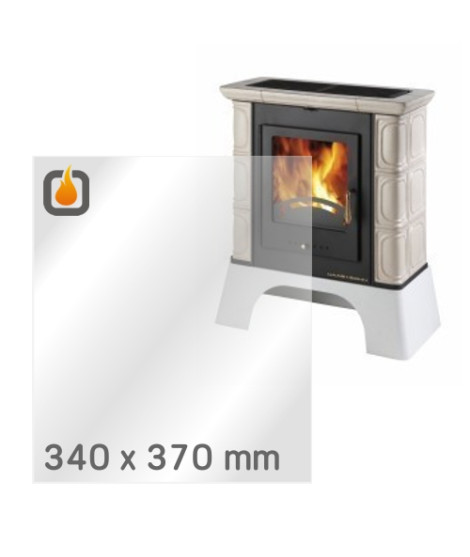 Das Glas hat die Maße 340 x 370 mm und eine Dicke von 4 mm. Es ist klar, beidseitig identisch und ideal als Ersatz für das originale Sichtglas Ihres Kaminofens.