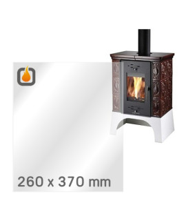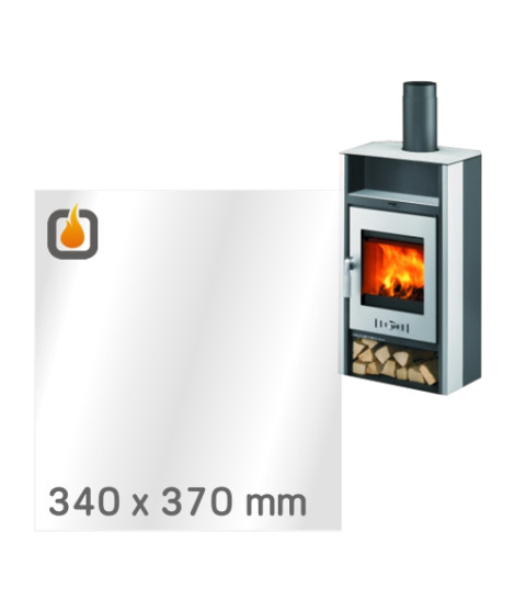 Das Glas hat die Maße 340 x 370 mm und eine Dicke von 4 mm. Es ist klar, beidseitig identisch und ideal als Ersatz für das originale Sichtglas Ihres Kaminofens.