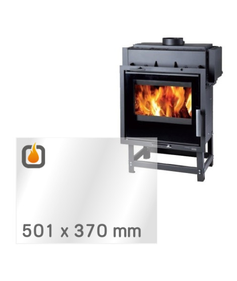 Das Glas hat die Maße 501 x 370 mm und eine Dicke von 4 mm. Es ist klar, beidseitig identisch und ideal als Ersatz für das originale Sichtglas Ihres Kaminofens.