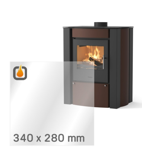 Das Glas hat die Maße 340 x 280 mm und eine Dicke von 4 mm. Es ist klar, beidseitig identisch und ideal als Ersatz für das originale Sichtglas Ihres Kaminofens.