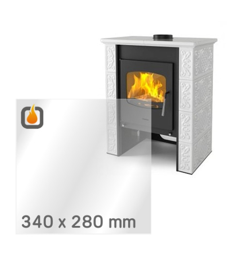 Das Glas hat die Maße 340 x 280 mm und eine Dicke von 4 mm. Es ist klar, beidseitig identisch und ideal als Ersatz für das originale Sichtglas Ihres Kaminofens.