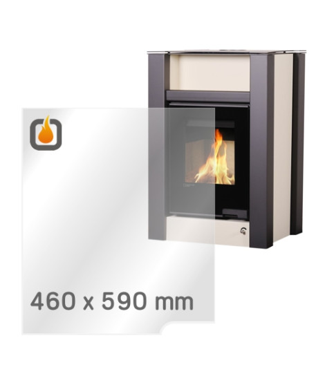 Das Glas hat die Maße 460 x 590 mm und eine Dicke von 4 mm. Es ist klar, beidseitig identisch und ideal als Ersatz für das originale Sichtglas Ihres Kaminofens.