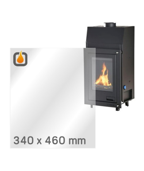 Das Glas hat die Maße 340 x 460 mm und eine Dicke von 4 mm. Es ist klar, beidseitig identisch und ideal als Ersatz für das originale Sichtglas Ihres Kaminofens.