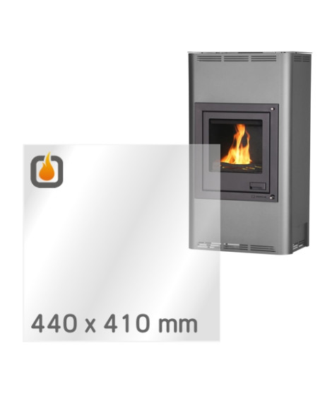 Das Glas hat die Maße 440 x 410 mm und eine Dicke von 4 mm. Es ist klar, beidseitig identisch und ideal als Ersatz für das originale Sichtglas Ihres Kaminofens.