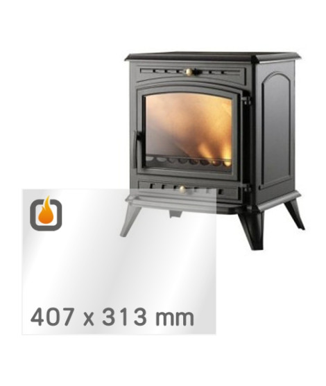 Das Glas hat die Maße 407 x 313 mm und eine Dicke von 4 mm. Es ist klar, beidseitig identisch und ideal als Ersatz für das originale Sichtglas Ihres Kaminofens.