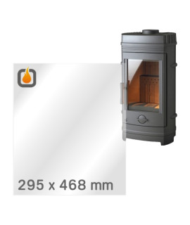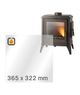 Das Glas hat die Maße 380 x 322 mm und eine Dicke von 4 mm. Es ist klar, beidseitig identisch und ideal als Ersatz für das originale Sichtglas Ihres Kaminofens.