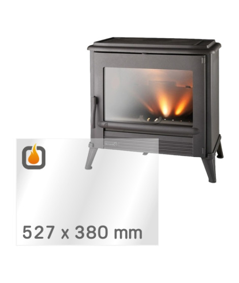 Das Glas hat die Maße 527 x 380 mm und eine Dicke von 4 mm. Es ist klar, beidseitig identisch und ideal als Ersatz für das originale Sichtglas Ihres Kaminofens.