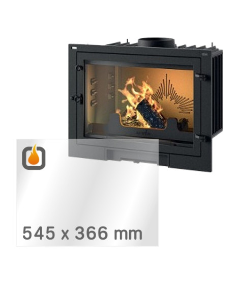 Das Glas hat die Maße 545 x 366 mm und eine Dicke von 4 mm. Es ist klar, beidseitig identisch und ideal als Ersatz für das originale Sichtglas Ihres Kaminofens.