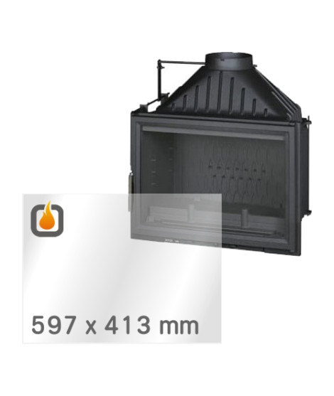 Das Glas hat die Maße 597 x 413 mm und eine Dicke von 4 mm. Es ist klar, beidseitig identisch und ideal als Ersatz für das originale Sichtglas Ihres Kaminofens.