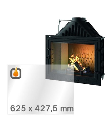 Das Glas hat die Maße 625 x 427,5 mm und eine Dicke von 4 mm. Es ist klar, beidseitig identisch und ideal als Ersatz für das originale Sichtglas Ihres Kaminofens.