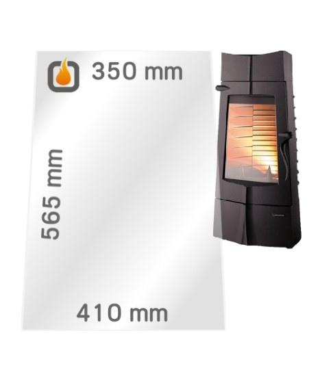 Das Glas hat die Maße 565 × 410/350 mm und eine Dicke von 4 mm. Es ist klar, beidseitig identisch und ideal als Ersatz für das originale Sichtglas Ihres Kaminofens.