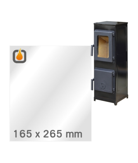 Das Glas hat die Maße 165 × 265 mm und eine Dicke von 4 mm. Es ist klar, beidseitig identisch und ideal als Ersatz für das originale Sichtglas Ihres Kaminofens.