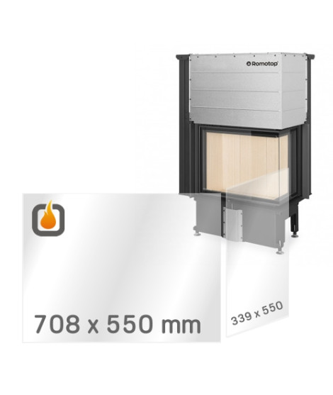 Die Ersatzt-Feuerfestprismenscheibe der Stärke 4mm mit den Maßen 708 x 550 mm und 339 x 550 mm für Kamineinsatz IMPRESSION R/L 2g L 71.60.34.21.