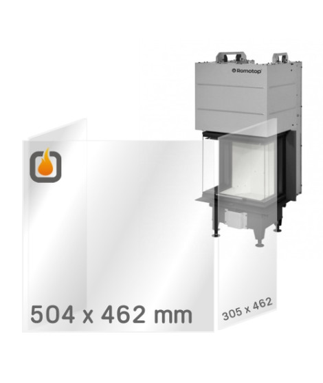 Die Ersatzt-Feuerfestprismenscheibe der Stärke 4mm mit den Maßen 504 x 462 mm (1 Stück) und 305 x 462 mm (2 Stück) für Kamineinsatz HEAT C 3G L 50.52.31.24.