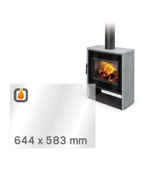Die Ersatzt-Feuerfestscheibe der Stärke 4mm mit den Maßen 644 x 583 mm für Kaminofen ALEDO 02.