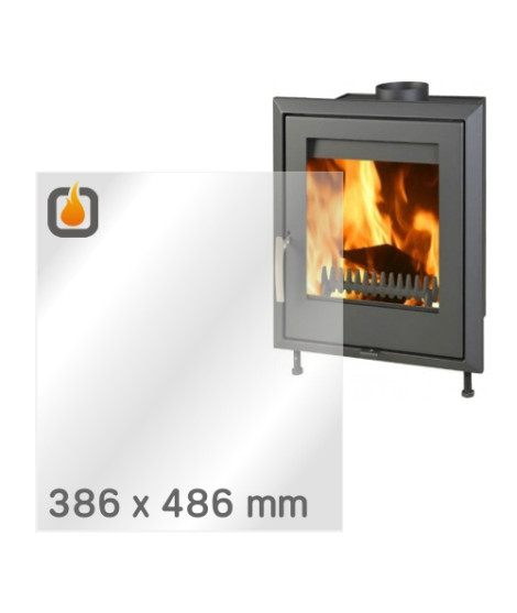 Das Glas hat die Maße 386 x 486 mm und eine Dicke von 4 mm. Es ist klar, beidseitig identisch und ideal als Ersatz für das originale Sichtglas Ihres Kaminofens.