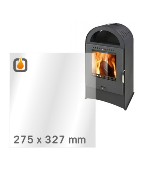 Das Glas hat die Maße 275 x 327 mm und eine Dicke von 4 mm. Es ist klar, beidseitig identisch und ideal als Ersatz für das originale Sichtglas Ihres Kaminofens.